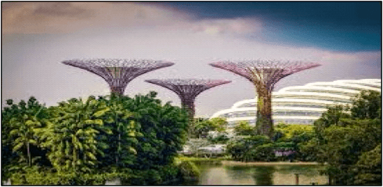 - Gardens by the Bay (Singapore) integrates plant life and works for climate regulation I urban park setting.